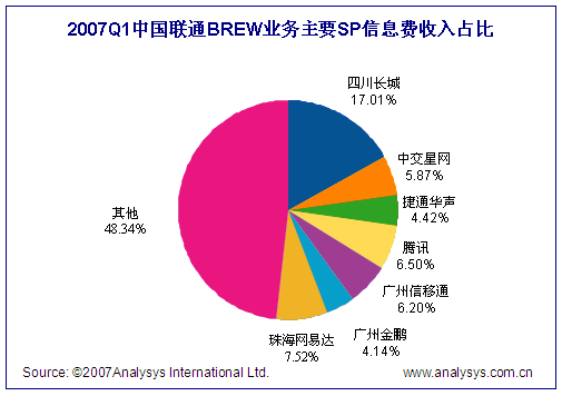 2007年第1季度中國聯(lián)通BREW市場(chǎng)整體規(guī)模達(dá)0.51億人民幣