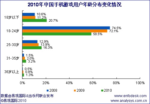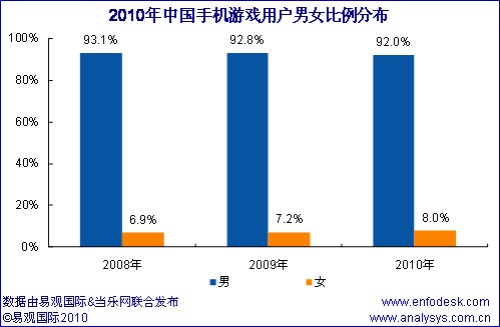 近期易觀國際、當樂網聯(lián)合對手機游戲用戶進行調研,推出《中國手機游戲用戶研究報告2010》,從中國手機游戲用戶結構特征和用戶行為方面分析手機游戲產業(yè)發(fā)展三大空間: