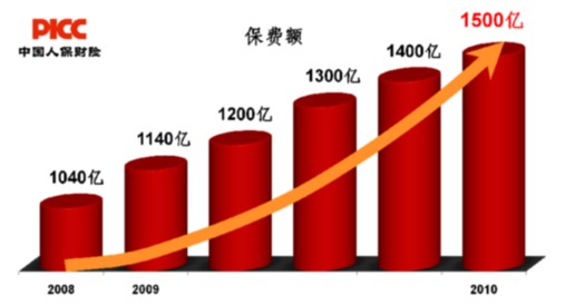 人保財險年前對外披露,截至2010年12月24日,人保財險保費突破1500億元,在全球可比上市非壽險公司中排名攀升至第8位。這是繼2008年保費突破1000億元、2009年突破1100億之后,人保財險再次實現(xiàn)了中國非壽險業(yè)的歷史性跨越。