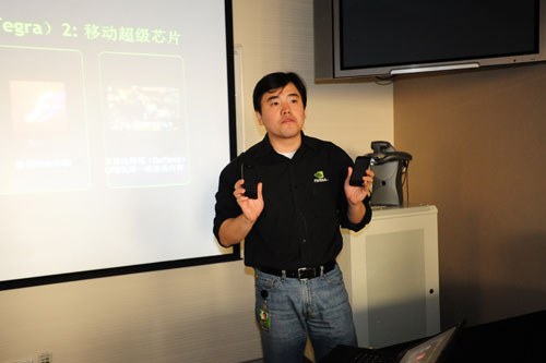 英偉達公司中國區(qū)公關(guān)經(jīng)理金洋先生展示天語和LG超級手機