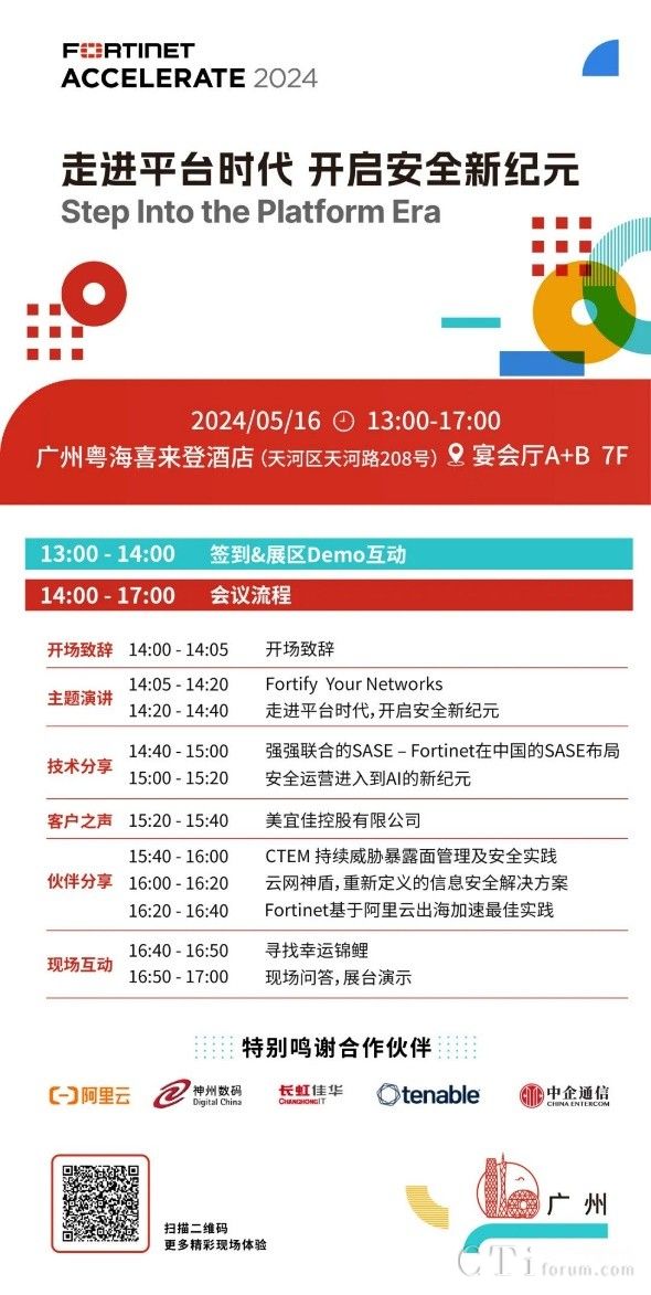 敬請(qǐng)掃描下方二維碼,與Fortinet相約廣州,共同邁向網(wǎng)絡(luò)安全平臺(tái)時(shí)代!