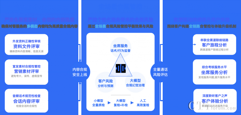 依托多項AI能力融合應用,升級后的【多模態(tài)合規(guī)分析平臺】能處理對話數(shù)據(jù)、圖片、音頻和視頻等各種格式的信息,同時采用大小模型組合式AI合規(guī)檢查機制,對各個渠道的客戶互動數(shù)據(jù)進行聚合分析,實現(xiàn)大模型構(gòu)成坐席和客戶間全場景多模態(tài)數(shù)據(jù)檢測與分析,以及客戶體驗升級。