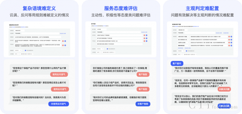 解決了傳統(tǒng)基于關鍵詞或NLP配置規(guī)則難以窮舉所有違規(guī)內(nèi)容,導致檢測遺漏的難題,智能質(zhì)檢的配置過程也更為簡便,只需簡單的描述輸入即可完成配置,大大降低了操作難度和成本。相較于人工質(zhì)檢,效率提升幅度超過1000倍。