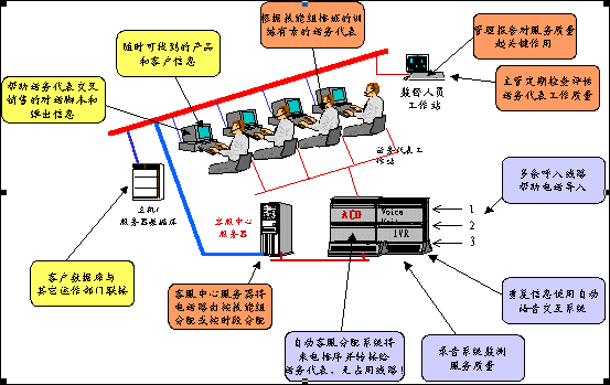 。。呼叫中心可以這樣定義,它是充分利用現(xiàn)代通訊與計算機技術(shù),如IVR(交互式語音應(yīng)答系統(tǒng))、ACD(自動呼叫分配系統(tǒng))等等,可以自動地處理大量各種不同的電話呼入和呼出業(yè)務(wù)和服務(wù)的運營操作場所。