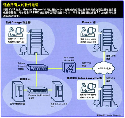 IP PBX。該公司并沒(méi)有在所有的桌面上部署新潮的IP電話,而是決定使用Sphere公司開(kāi)發(fā)的基于軟件的電話。