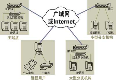 純IP電話就是采用專用的IP電話機(jī)以及語(yǔ)音網(wǎng)關(guān),通過(guò)企業(yè)內(nèi)部網(wǎng)絡(luò)(LAN)以及外部互聯(lián)網(wǎng)共同構(gòu)建的應(yīng)用系統(tǒng)。LAN是一個(gè)前提,否則談?wù)摷僆P電話就沒(méi)有什么意義,其中的IP電話機(jī)不是連接在電信局所提供的電話插座上,而是像PC機(jī)、筆記本電腦那樣直接連接到LAN的接口。也就是說(shuō),應(yīng)用完全構(gòu)建在數(shù)據(jù)網(wǎng)絡(luò)的基礎(chǔ)之上。