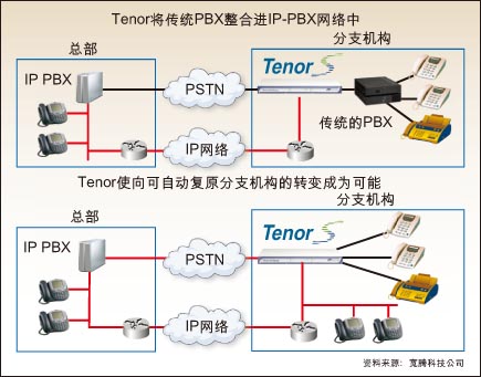 能使H.323和SIP終端得以繼續(xù)適用、還能在IP網(wǎng)絡(luò)中提供緊急呼叫(E911)服務(wù),這些性能使IP網(wǎng)關(guān)對(duì)運(yùn)營(yíng)商更具吸引力。寬騰公司從Tenor產(chǎn)品開始瞄準(zhǔn)了企業(yè)用戶。