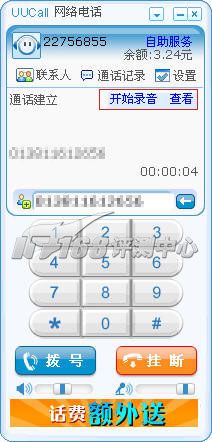 對于新注冊用戶,UUcall很大方的贈(zèng)送了30分鐘時(shí)長的話費(fèi)-3.6元。
