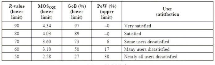 G.113 Appendix I,找到合適的Ie和Bpl值);第五步:根據(jù)終端類型,確定A值;第六步:計(jì)算R值,根據(jù)R和MOS的對(duì)照關(guān)系表,得到MOS值。