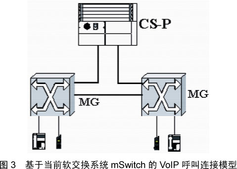 針對(duì)第一類的連接通話情況,可以用建立如下的通話連接模型,如圖3所示。該圖是整個(gè)軟交換系統(tǒng)的簡化圖,具體的細(xì)節(jié)沒有描述。