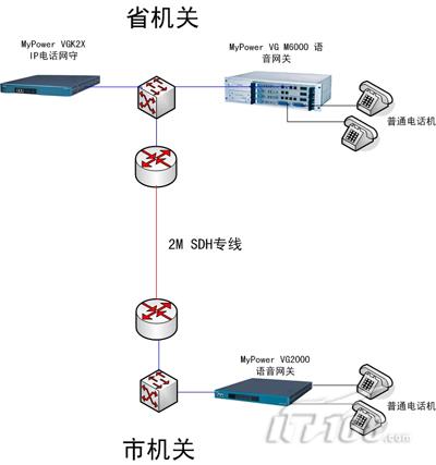 我們可以看到這個(gè)VOIP語(yǔ)音方案對(duì)原有網(wǎng)絡(luò)結(jié)構(gòu)是不做任何改動(dòng)的,網(wǎng)絡(luò)配置也不需要做任何改動(dòng),只需要在語(yǔ)音語(yǔ)關(guān)上做是相關(guān)配置,若原電話布線系統(tǒng)不健全,可能需要進(jìn)行桌面電話集中到網(wǎng)絡(luò)中心的電話布線。在這個(gè)方案中,VOIP電話系統(tǒng)利用現(xiàn)在的統(tǒng)計(jì)局專線網(wǎng)絡(luò)與各市局相連,然后各市局機(jī)關(guān)VOIP電話系統(tǒng)連接到現(xiàn)有辦公局域網(wǎng)就可以了。網(wǎng)絡(luò)結(jié)構(gòu)非常簡(jiǎn)單。