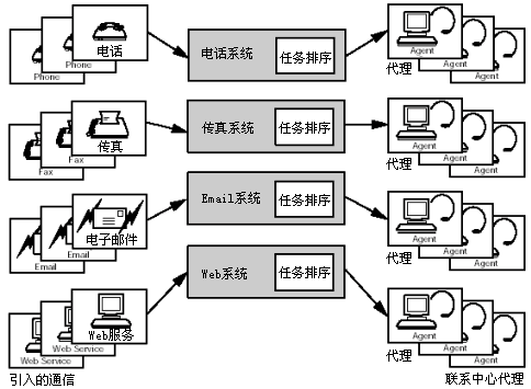 為了提高工作效率,當前的跨媒體聯(lián)系中心必須提供新的功能和特點。例如需要新的隊列結構,具有處理和分配一個邏輯通路上不同通信媒體請求的能力。所有的入站查詢均由新的負載隊列系統(tǒng)處理。