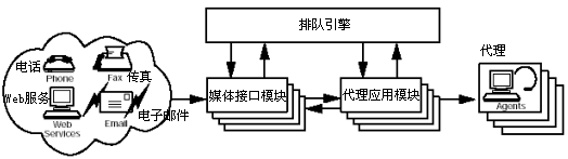 • 隊列引擎--根據(jù)由系統(tǒng)管理員設立的商業(yè)原則,處理所有的用戶的交互行為。該引擎是中央?yún)f(xié)調點。