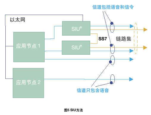 也可以采用物理上隔離應(yīng)用媒介/電路處理和SS7協(xié)議狀態(tài)信息,使兩個(gè)應(yīng)用程序可以利用兩個(gè)SS7接口進(jìn)行通信(SIU采用這種方法)。物理隔離可以采用RSI和以太網(wǎng)來實(shí)現(xiàn)。