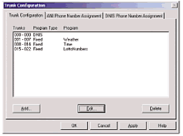 用戶(hù)可以為項(xiàng)目中的任何一個(gè)應(yīng)用程序分配一個(gè)中繼資源或者多個(gè)中繼資源。也可以根據(jù)從那些呼叫線路受到的ANI或者DNIS信息來(lái)決定應(yīng)該為程序分配哪種資源。